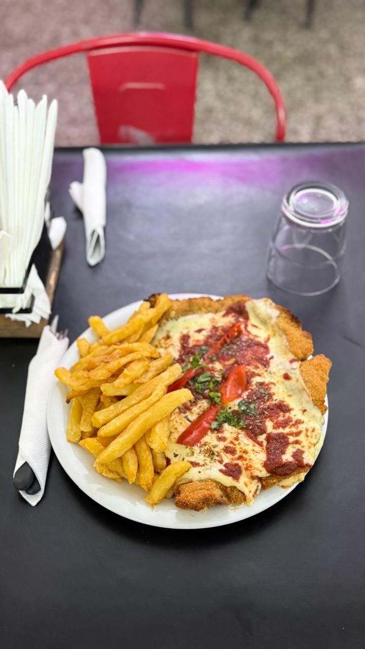 La clásica milanesa napolitana de la casa con papas fritas bien caseras, un plato que vienen perfeccionando hace décadas de la mano de Norma, la genia detrás de las delicias del menú. El plato es IM-PER-DI-BLE.