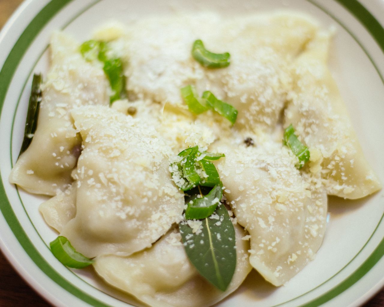 Pelmeni -Un plato tradicional de la cocina rusa, pequeñas bolas de masa rellenas de carne picada de cerdo y vaca, elaboradas artesanalmente.